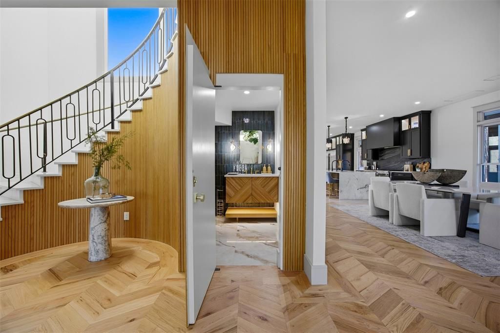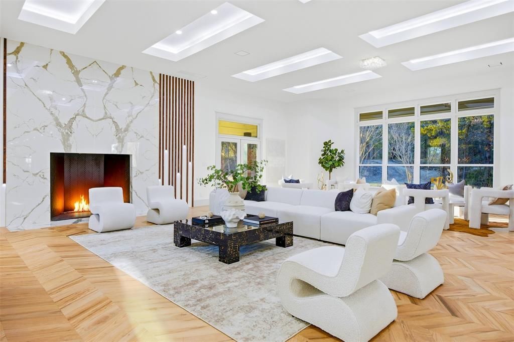 Welcome to this stunning newly renovated luxury estate offering 6,632 sq ft of living space on 48 private acres, creating a peaceful and completely secluded retreat. This exceptional property features 5 bedrooms, 4 full bathrooms, and a hidden half bath, with every detail thoughtfully designed. The main level showcases an expansive open-concept design with two spacious living areas and elegant chevron oak flooring throughout. The chef’s kitchen is the centerpiece of the home, featuring double quartz islands, custom soft-close white oak cabinetry, oversized designer hardware, and premium smart appliances, along with a Sub-Zero wine chiller, and custom LED lighting around the bar.Upstairs, a staircase that illuminates with every step leads to four bedrooms, each with its own private en-suite bathroom and walk-in shower, plus custom closet built-ins. The luxurious primary suite features a fireplace, custom closet system, a hidden closet, and spa-inspired bathroom with a soaking tub, walk-in shower, and private sauna, along with access to a wraparound patio overlooking the property.Additional highlights include a moody executive office, a large laundry room with space for two washers and two dryers plus a dog wash station, three oversized garages, and a private mother-in-law suite with its own bedroom, full bath, kitchenette, and loft space above.Outside, enjoy an outdoor kitchen and entertaining area, along with a full-size barn with 6 stables for horses and livestock. With 48 acres that feel completely private, this property offers the perfect blend of luxury living, ranch lifestyle, and modern upgrades a truly rare opportunity.