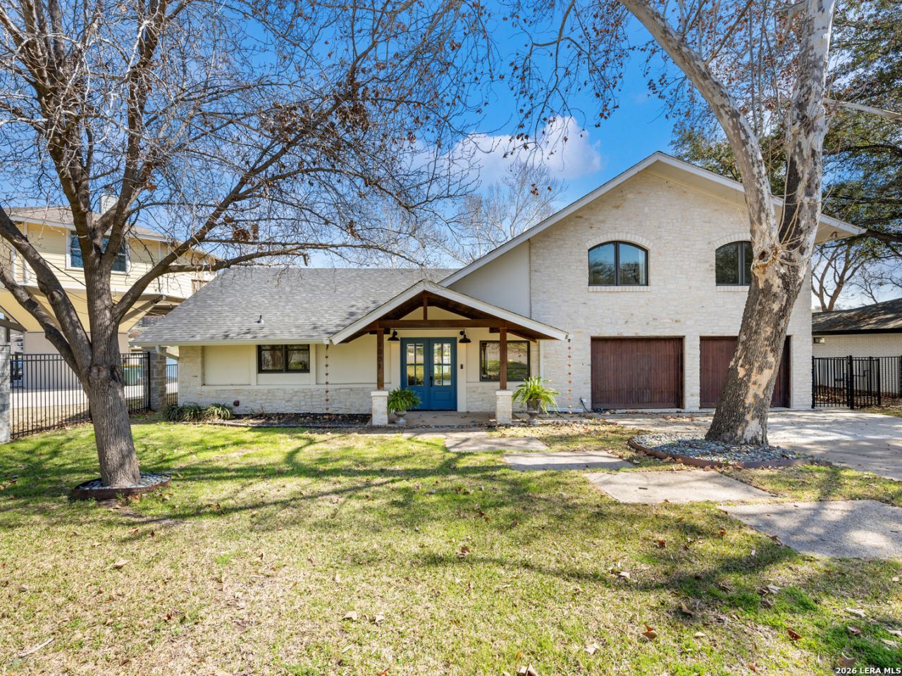 Dont miss out on this beautifully renovated home on open water at Lake Marble Falls! Huge family room open to kitchen. Spacious, flat backyard perfect running around and laying on a blanket watching the July 4th fireworks! Kitchen has 6 burner gas cooktop, double ovens, built-in refrigerator, quartz countertops & huge island. Primary BR down. Bath w/ large walk-in shower and closet with built-ins. Upstairs is 3 Bedrooms, Study & bonus room w/ balcony overlooking the lake! All 5 rooms upstairs could easily be used as bedrooms. Private dock w/ 1 boat slip. Amazing location close to shops & restaurants.
