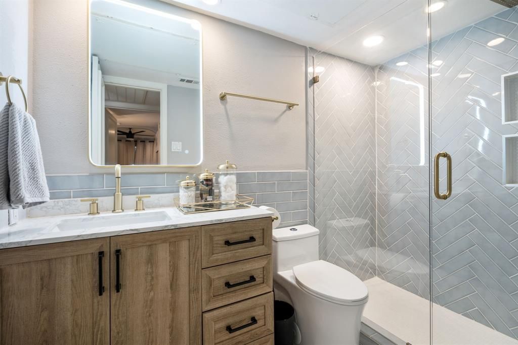 Fully updated and thoughtfully designed, this refined condo blends modern finishes with effortless everyday living. White oak hardwood floors flow throughout the space, creating a warm and cohesive foundation, while clean lines and curated details elevate the overall aesthetic.The kitchen is both functional and inviting, featuring sleek quartz countertops, prep space, and a layout that opens seamlessly into the living and dining areas—ideal for both quiet evenings and entertaining. The bedroom offers a spacious retreat with two walk-in closets, providing exceptional storage and flexibility. The beautifully updated bathroom showcases contemporary finishes and a clean, timeless design.Located within a gated community, this residence offers both privacy and convenience, with a community pool just steps from the unit—perfect for relaxing on warm Texas days. One covered parking space adds ease to daily living. A well-appointed home that combines style, comfort, and a prime setting. Seller is open to selling all furniture items in the home.