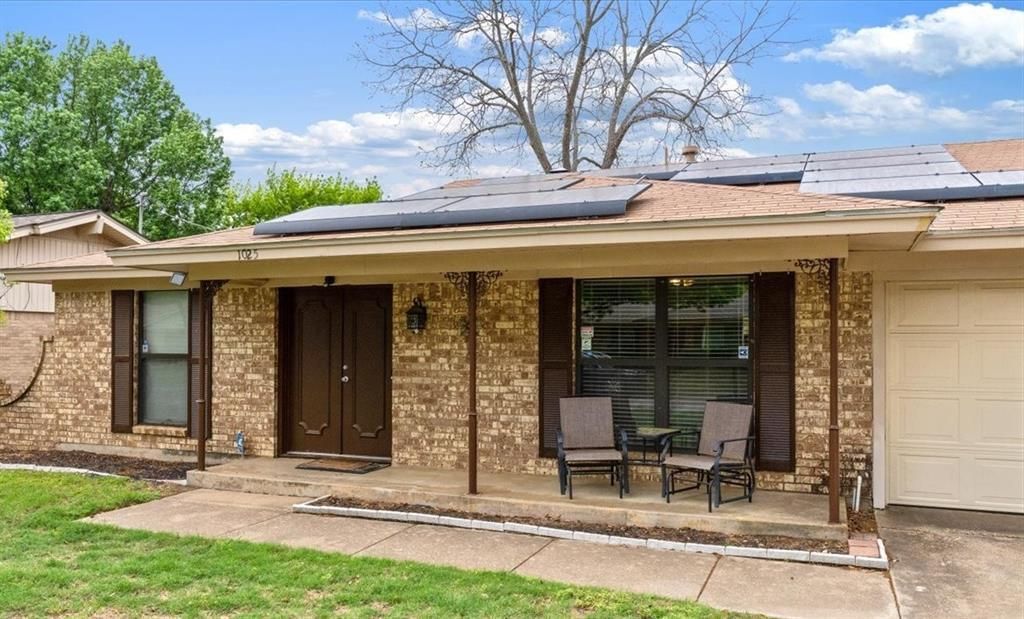 Location Location Location in the heart of Hurst, Texas!! Welcome to this well maintained 3-bedroom, 2-bath traditional home located in the established Glenn View Addition of Hurst. Offering 1,365 sq ft of comfortable living space, this charming residence features an inviting layout with a spacious 30-ft living room anchored by a cozy gas-log fireplace—perfect for relaxing or entertaining. The kitchen is thoughtfully designed with granite countertops, built-in cabinetry, and an eat-in breakfast area. A separate dining room provides additional space for gatherings. The primary suite includes a walk-in closet, built-in storage, and an ensuite bath. Secondary bedrooms are generously sized with split layout for added privacy. Enjoy durable luxury vinyl plank flooring, decorative lighting, and high-speed internet availability throughout. The home sits on a large interior lot with a private, fenced backyard, covered patio, and mature grass—ideal for outdoor living. Additional highlights include an oversized 2-car garage, solar electric system (leased), new insulation installed in 2024, and a new gate added in 2026. All appliances and shed will convey.Conveniently located within HEB ISD and close to shopping, dining, parks, and major highways, this home offers comfort, efficiency, and an unbeatable location.All appliances and shed will convey. All new insulation-2024, new gate-2026