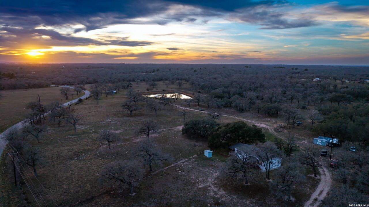 Longhorn Oaks Ranch is a turnkey recreational ranch in a highly desirable location approximately one hour from both San Antonio and Austin. This ag-exempt property is cross-fenced into four pastures with excellent grazing and hay production potential. The land is studded with mature live oak and post oak trees and is teeming with wildlife, including whitetail deer, dove, and the occasional feral hog - making it an outstanding hunting and recreational property. At its fullest, the 2 acre stock pond features trophy-size catfish (that will eat out of your hand) and sits near a 20x30 pole barn, creating the perfect gathering spot. There is a paddle boat that will convey. Additional improvements include a 30x30 barn with 3 cattle working pens and a loading chute. The well-maintained 3 bed / 2 bath, 1,400 sq ft mobile home sits on a concrete slab with electric and plumbing run through the slab for long-term stability and durability. Large oaks provide beautiful shade around the home. Paved frontage on two sides with easy access off County Road 435 ("Longhorn Road"). Property is turnkey with furniture, tractor, and implements negotiable, plus two 8x20 connex containers for storage. Ready for immediate enjoyment as a weekend retreat, hunting property, or secondary home.