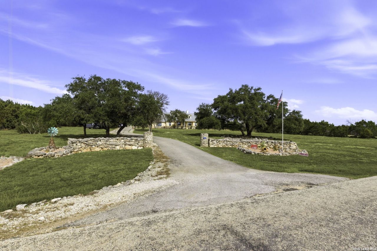 Welcome to 104 Rolling View Drive-an extraordinary Hill Country estate where refined luxury and unspoiled natural beauty exist in perfect harmony. Set within the coveted River Mountain Ranch community in Boerne, this remarkable property offers an elevated lifestyle defined by privacy, space, and exclusive river access. Encompassing 5.11 acres of level, oak-studded terrain, the residence commands sweeping front-facing views of the Texas Hill Country-an ever-changing panorama of rolling landscapes and vibrant sunsets. Property owners enjoy private access to two parks along the iconic Guadalupe River and an additional park on Spring Creek, providing exceptional opportunities for tubing, kayaking, canoeing, and swimming just moments from home. The thoughtfully designed interior spans four spacious bedrooms, four full baths, and a dedicated office-offering flexibility for multigenerational living, remote work, or gracious guest accommodations. An expansive open-concept floor plan anchors the home, where the gourmet kitchen flows seamlessly into the great room beneath soaring vaulted ceilings. Granite countertops, a generous center island, breakfast bar seating, custom cabinetry, and new appliances create a culinary environment that is as functional as it is elegant. Refined details enhance every space: built-in desks in the office and secondary bedroom, custom window coverings, and a striking stone wood-burning fireplace that invites intimate evenings and memorable gatherings. Natural light pours through well-positioned windows, reinforcing the homes connection to its scenic surroundings. Outdoor living is equally compelling. Tiled front and rear porches provide tranquil vantage points for morning coffee or sunset entertaining, complemented by new Hunter ceiling fans that ensure comfort during warm Texas evenings. The exterior showcases four-sided Sisterdale stone and a durable standing seam metal roof-delivering both architectural distinction and lasting performance. Practical enhancements further elevate the propertys appeal, including a 3,300-gallon concrete water storage tank, irrigation system, fully fenced front and rear yards, and a 12 x 20 metal storage building. The oversized two-car garage includes additional storage space, while extended gravel parking accommodates recreational vehicles, boats, or additional automobiles with ease. Wildlife sightings-deer, foxes, wild turkey, and an array of native birds-create an immersive Hill Country experience that feels worlds away, yet remains conveniently close to the boutiques, fine dining, wineries, and highly regarded schools of downtown Boerne. 104 Rolling View Drive is more than a residence; it is a private sanctuary offering river access, panoramic views, and sophisticated comfort in one of the Hill Countrys most desirable settings. For discerning buyers seeking acreage, elegance, and an unparalleled connection to nature, this property represents a r