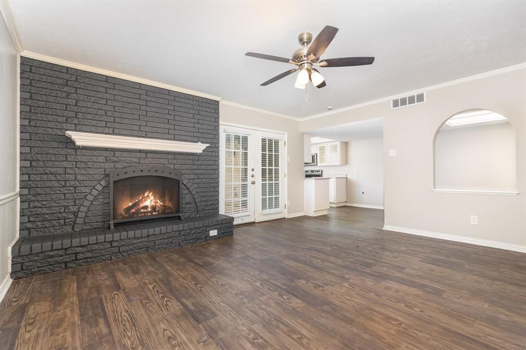 Spacious home in a wonderful area. Open formal living and dining areas provide lots of space with vaulted ceiling and LVT flooring. Open kitchen featuring granite countertops, stainless steel appliances, plenty of cabinet space and attached breakfast area. Den is open to the kitchen with fireplace and French doors leading to the patio and fenced back yard. Nice sized secondary bedrooms with ample closet space. Large primary suite with walk-in closet. Attached two car garage. Lovely tree-lined street with quick access to Central Expressway.