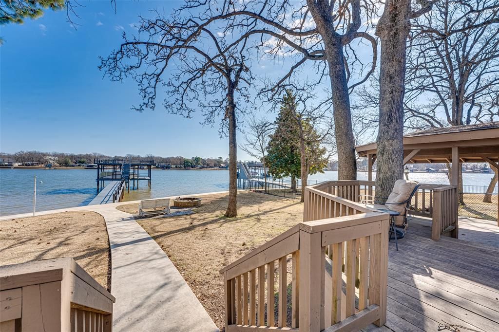 Spectacular one story ranch style lakefront home situated on wooded cul-de-sac lot with a ton of parking in highly sought after Enchanted Oaks that allows STR's at Cedar Creek Lake. Enchanted Oaks is where only site-built homes are permitted to preserve value and appeal. The residence enjoy access to the community pool, playground, dog park, boat launch and boat storage areas. This home features 3 spacious bedrooms one of which is a bunk room that sleeps 6, 2.5 baths, a flex space, and 3 living areas including large game room with wood beamed vaulted ceilings, custom built-ins and Plantation Shutters. The family room offers a stone WBFP and an effortlessly flows to the second living area with an abundance of windows overlooking open water and the huge wrap around deck with gazebo. Enjoy endless breathtaking views of the lake with eastern facing morning sunrise, firepit, and recently updated boat dock with party deck including boat lift plus PWC lift and covered porch area! The opportunities are endless would make a perfect primary home, second home, vacation home that is great for entertaining both family and friends. Many recent updates including roof in 2025, dock tune up 2025-2026, steel retaining wall 2020, landscaping 2024. Please see Transaction Desk for details and receipts.