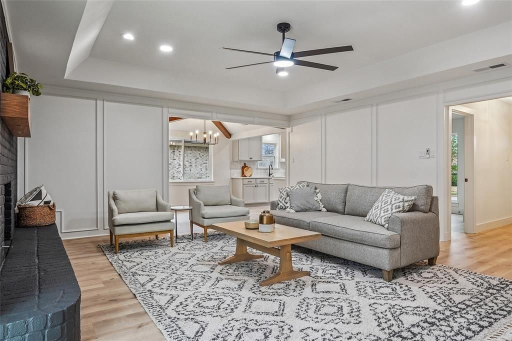 Perfectly positioned in a prime location and close to everything flowermound has to offer. This completely updated 4-bedroom, 2-bath home offers modern style, quality upgrades, and exceptional comfort throughout. Step inside to discover a beautifully renovated interior featuring brand-new windows and a sliding glass door that flood the home with natural light. Enjoy peace of mind with a new roof, fresh interior and exterior paint, updated plumbing and electrical fixtures, and high-end finishes throughout.The heart of the home shines with custom cabinetry, stunning quartz countertops throughout, and all-new wood and tile flooring complemented by plush new carpet in the bedrooms. Every detail has been thoughtfully upgraded for modern living.Both bathrooms have been completely transformed with new flooring, updated cabinetry, fresh paint, stylish mirrors, and a sleek frameless glass shower in the primary bedroom that adds a spa-like touch.Outside, you’ll find a spacious backyard with mature trees and plenty of room to relax, entertain, or play — the perfect extension of your living space. Move-in ready, beautifully finished, and in a fantastic location — this is the one you’ve been waiting for!