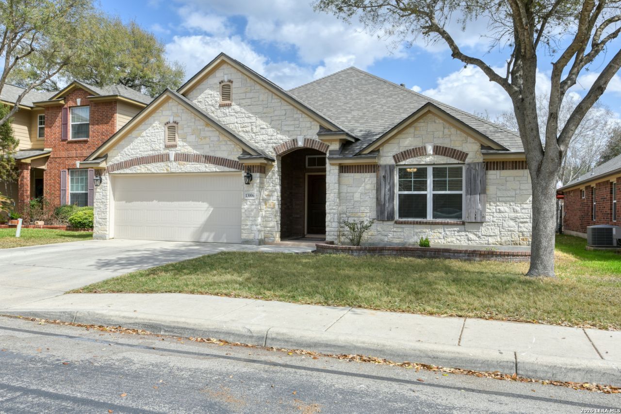 This move-in ready gem has everything you need - and then some. Four bedrooms, a dedicated office, and a formal dining room with a custom china cabinet inset, all on the first floor. The kitchen shines with a full compliment of high quality stainless steel appliances and cabinets, including double ovens, and expansive granite counters. Upstairs, the media room is a true showstopper with a $10K media system and four motorized reclining chairs on a raised platform - just plug and play and sit down and enjoy. Step outside to a custom patio with custom shade structure backing up to a peaceful greenbelt with walking trail. Privacy, nature, and convenience all at once. New roof, new first floor carpet and fresh interior paint. Washer and dryer included. Minutes from Loop 1604 and Bandera Rd. Come see it today. Youll want to stay!