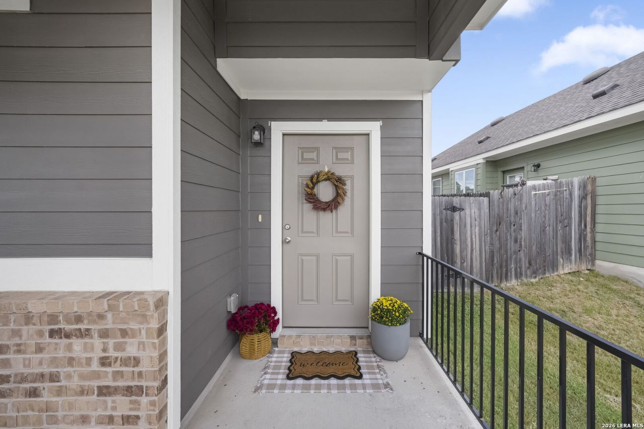 Charming and thoughtfully upgraded 3-bedroom, 2.5-bath home in the highly sought-after Blanco Vista community, just a few years old and move-in ready. Ideal for first-time buyers, college students, downsizers, or investors seeking a prime location near Texas State University with convenient access to Austin. The inviting open-concept floor plan features a spacious living area, a dedicated dining space, and a well-appointed kitchen with quartz countertops, a stylish backsplash, ceramic tile flooring in the main areas, and GE appliances, including a gas range, microwave, and dishwasher. A welcoming front porch adds both function and curb appeal. The private backyard offers hardscape upgrades, shade sails, and a storage shed, perfect for outdoor entertaining, relaxing evenings, or low-maintenance enjoyment. Located just minutes from Five Mile Dam Park and the Blanco River, residents enjoy access to Blanco Vistas exceptional amenities, including two community pools (Junior Olympic-size pool and splash pad), a stocked fishing pond, hike and bike trails, and direct park access. Highly rated Blanco Vista Elementary is located within the community. Conveniently positioned near shopping, the new Buc-ees, and major commuter routes to Austin. A rare opportunity to own a well-maintained home that combines lifestyle, location, and value.