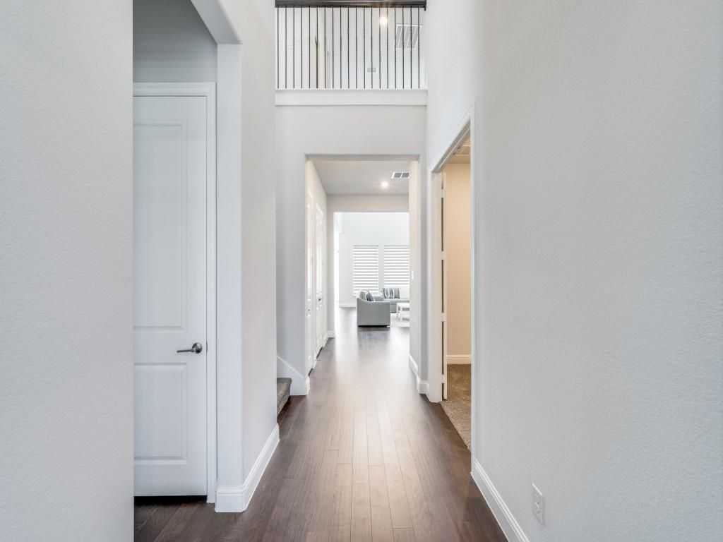 Beautiful home barely lived in by owner. This home features 20' ceilings in living area, the fireplace is an elegant statement, open-concept floor plan, split primary bedroom, spare bedroom down, media and office down, wood flooring, 2 bedrooms up with living area up, 4 full bathrooms, and large backyard, .26 acre lot backing up to greenbelt. The size of the backyard gives endless possibilities for your custom outdoor oasis. This home has a water filtration system, 3 car tandem garage, lake is approximately half mile away, and you will never have anything built behind your home giving peace and tranquility. The kitchen features built in appliances, deep sink, shaker style cabinets, quarts counter tops, a large eating island area which opens to living area featuring a 20' floor to ceiling fireplace. 8' interior doors, mud room and laundry room which connects to the primary closet for convenience. Updated window shade coverings on all windows gives this home a custom and warm feel. Furniture can be purchased with home and also barely used. HOA includes a community pool, clubhouse, and playground for family time. A true gem!