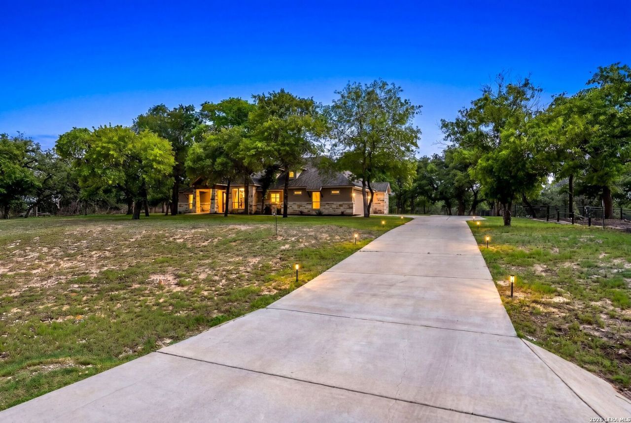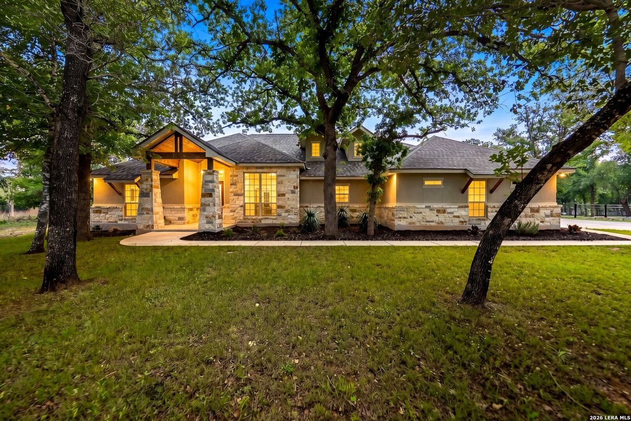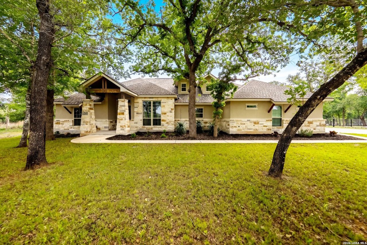 Welcome to your dream home in the highly sought-after Eden Crossing community in Adkins, just minutes from San Antonio. Experience elegant country living with a stunning front elevation framed by mature oak trees that provide beautiful shade throughout the day. Situated on a spacious one-acre lot, this home offers the perfect blend of luxury, comfort, and tranquility. The thoughtfully designed open-concept floor plan showcases rich finishes throughout, including luxury granite countertops in the kitchen and bathrooms. The island kitchen is a chefs delight-perfect for cooking, gathering, and entertaining-while the striking stone-accented wood-burning fireplace serves as a warm and inviting focal point. Enjoy low-maintenance living with wood-grain ceramic tile flooring throughout-completely carpet-free. The private primary suite is a true retreat, featuring a spa-like bathroom with a soaking tub, a large walk-in shower, and dual walk-in closets. Step outside to unwind on the impressive 36-foot covered back patio, ideal for relaxing or entertaining while taking in the peaceful surroundings. This home has been gently lived in, with both the fireplace and dishwasher never used-offering a like-new experience for its next owner. Schedule your private showing today-this exceptional property is sure to impress!