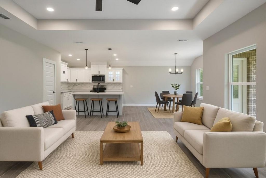 Welcome to your dream home in the beautiful new Crossing at Mission Ridge subdivision! This stunning new construction offers 4 spacious bedrooms, 2 modern bathrooms, and all the features you’ve been looking for with NO HOA. Step inside to find tile flooring throughout the main living areas, providing both style and easy maintenance. The split floorplan offers privacy and functionality, while plush carpeting in the bedrooms adds a cozy touch. The bright, open-concept layout is flooded with natural sunlight, creating a warm and welcoming atmosphere. Home chefs will love the gas stove in the stylish kitchen, perfect for cooking up your favorite meals. Outside, enjoy a stroll through the neighborhood on the well-maintained sidewalks, ideal for morning walks or evening chats with neighbors. Conveniently located in the heart of Lindale, you're just minutes from schools, shopping, and dining. Don’t miss the chance to own a brand-new home in one of Lindale’s most sought-after communities!