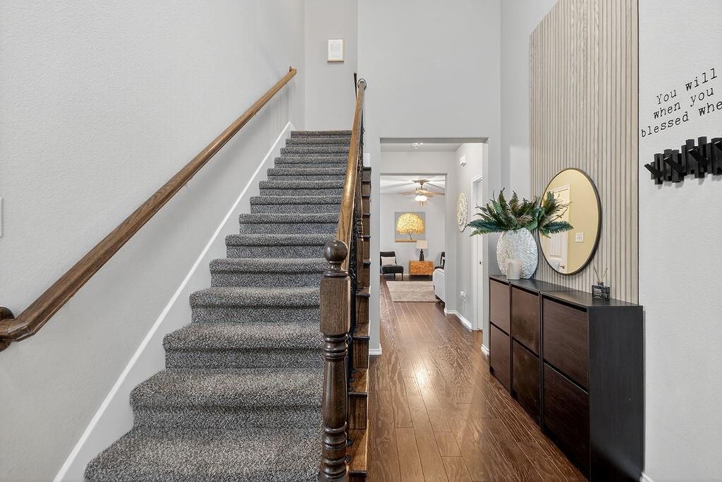 Perfectly situated on the border of Frisco and Prosper, this home offers the ultimate North Texas lifestyle. Enjoy being just 3 minutes away from the shopping, dining, and charm of Adriatic Village. Located within the highly acclaimed McKinney-Prosper ISD, this property provides access to some of the top-rated schools in the area. Experience the perfect blend of convenience and community in a sought-after location. This charming and move-in-ready 3-bedroom, 2-half-bath, and 2-car garage. This home features an open-concept layout perfect for comfortable living and entertaining. The main level boasts engineered wood flooring, while the upstairs has been refreshed with brand-new plush carpeting. A standout feature upstairs is the transformed hallway walk-in closet—currently a “mom’s paradise” makeup and accessory room, but easily converted back into a spacious storage closet. The spacious primary suite includes a private en-suite bathroom and generous closet space. Two additional bedrooms share a convenient Jack-and-Jill bathroom—ideal for families or guests. Throughout the home, you’ll find thoughtful upgrades and an abundance of storage, including large closets in every room.Step outside to enjoy the spacious Backyard features over 20 Juniper giant trees for privacy, complete with a covered patio—perfect for outdoor dining or just relaxing. With a gas line for a direct BBQ hook-up. This home blends style, functionality, and space, making it an excellent opportunity for buyers seeking comfort with modern touches.