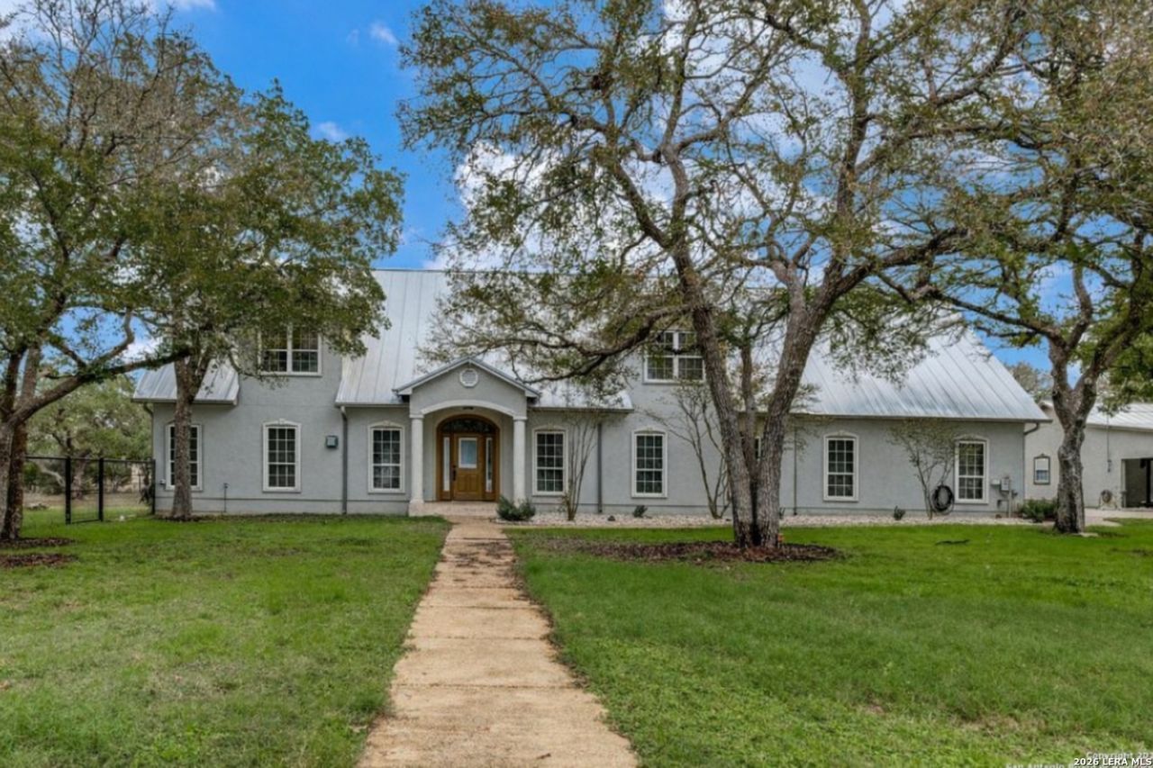 If youre looking for an exceptional hill country retreat at a fantastic price, this is it! This beautiful well-manicured 4.35 +-acre oak studded property welcomes you in through a private security gate with a concrete drive with plenty of extra open area for another workshop or parking. Fresh paint throughout the home. The inviting spacious living room welcomes you with great crown molding, accent lighting, wood floors and a gas fireplace. The spacious chef kitchen offers abundant counter and cabinet space, granite counter tops, double ovens, gas cooking, island, breakfast bar and opens to a bright breakfast/sunroom that fills the home with natural light. The spacious owners suite boasts a gorgeous walk in shower and double vanities, while the downstairs guest suite provides a large closet and convenient access to a full bath-perfect for visitors. Upstairs youll find two new generously sized bedrooms with new carpet, great game room and a full bathroom. Enjoy watching the wildlife from the large back deck. There is an attached side entry three car garage, an wonderful 30x30 workshop with a loft area for additional storage and room to park at least 2 more cars OR tall enough for RV parking. 2 car carports for extra parking. Now, although needing some TLC, the guest house is an added value with kitchen, living room, bedroom and full bath. The property is completely fenced and cross fenced with a small generator to help during any outages! Come see this well-loved property before its gone! Some photos are virtually staged.