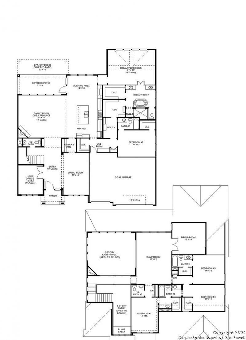 Front porch opens into the entryway embraced by a 19-foot ceiling. French doors close off the home office for extra privacy. Adjacent is the dining room that is connected to the main kitchen area by a butlers pantry. Past the staircase you enter the family room which boasts a corner wood mantel fireplace and glass sliding doors. Hardwood floors throughout main living area. The bright morning area offers access to the covered backyard patio. The kitchen hosts an island with built-in seating, a 5-burner gas cooktop, and a large walk-in pantry. The primary bedroom allows in ample natural light from the wall of windows. Double doors open into the primary bathroom which features dual vanities, a freestanding tub, glass enclosed shower, two walk-in closets, and dual access to the utility room. A private guest suite with access to the garage features a full bathroom and walk-in closet. Upstairs on the second level is a generous game room overlooking the first floor. French doors lead into a theatre room. Secondary bedrooms and a Hollywood bathroom complete the space. Landscape features a 7 zone sprinkler system. The mud room is located off the three-car garage.