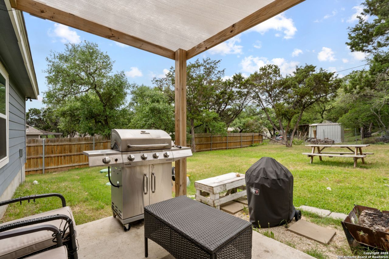 $5000 Sellers Concessions! Whether youre looking for your forever home or investing in a vacation rental, look no further. This 3-bedroom, 2-bathroom home in a quiet, family-friendly neighborhood is the perfect space to unwind. The open living/dining/kitchen area with large breakfast bar is perfect for entertaining. The front porch and pack covered patio provide a great opportunity to star gaze. The home is listed fully furnished but seller is open to meeting buyer needs. This home has a 5 star ranking on Airbnb and guests rave about the cozy space and the friendly wildlife that often approach. The country views are so serene and this is a friendly community with great amenities located just one more from Comal Park beach area. Dont miss this amazing opportunity to own a slice of heaven or wonderful income producing property.
