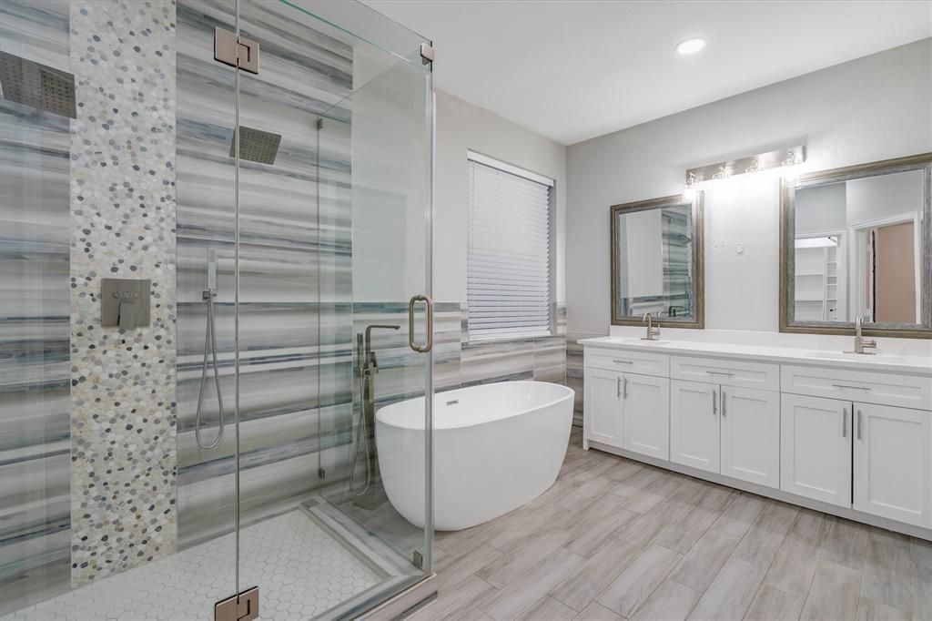 Walking in with Equity is the key to Real Estate! This home is priced below 2 appraisals. Beautifully updated home offering 4 bedrooms, multiple dining options, 3 spacious living areas, 2.5 baths, and a 2-car garage. The kitchen opens seamlessly to the breakfast area and main living space and features stainless steel appliances with double oven, a gas range with modern vent hood, custom cabinetry, quartz countertops, and a striking backsplash. The primary suite is conveniently located on the main level and includes a walk-in custom closet and a spa-inspired bath with a Victorian soaking tub. Wood-like tile flooring throughout with no carpet. No HOA. Enjoy cozy evenings by the wood-burning fireplace with gas starter. Upstairs features an open flex space ideal for a media room, game area, or additional living space. Step outside to a backyard retreat with an inground heated pool and covered patio, perfect for year-round enjoyment.