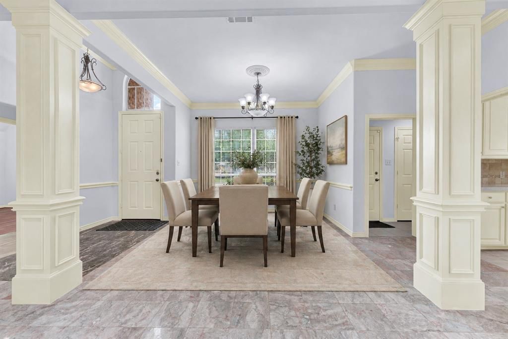 This well-maintained home offers over 2,823 sq. ft. of living space, featuring a versatile bonus room or office above the two-car garage. The open layout provides a comfortable flow, perfect for family living and entertaining. The inviting living room showcases a cozy fireplace as a warm focal point. The well-appointed kitchen boasts tile countertops, ample white custom cabinetry, and a peninsula for meal prep and casual dining. Decorative columns throughout add charm and elegance. Step outside to a spacious patio, ideal for relaxing or entertaining. Key updates include a recently updated HVAC system, a solid slab foundation with no reported movement, and a roof replaced in 2019. Located in the highly regarded Richardson ISD, this home sits in a desirable neighborhood offering convenience and a community-oriented atmosphere. Enjoy nearby parks, shopping centers, dining options, and recreational areas, all within easy reach. With easy access to I-30 and the George Bush Turnpike, commuting to Plano, Richardson, and downtown Dallas is seamless. Nearby Firewheel Town Center provides shops, dining, and entertainment, combining a quiet suburban lifestyle with city convenience. This property is an excellent opportunity for buyers seeking space, personalization, and long-term value in a well-connected, vibrant community. Schedule a showing today to experience all this home and neighborhood have to offer.