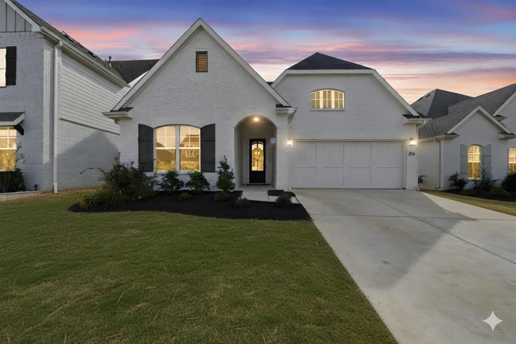 PRICE REDUCED! Gorgeous Cottage Tudor located near 12 acres of manicured park space in Parks of Aledo. Featuring wood like vinyl floors throughout, cathedral vaulted ceiling in the main living room with wood stained beam, signature brick archway as you enter main living areas, custom painted brick fireplace with natural gas, Ecobee 4 Smart thermostat and 2 USB plugs. More luxury features include: spacious dream kitchen with gourmet gas cooking and expansive eat-in island and farm sink; designer lighting throughout, mud lockers with painted bead board, frameless glass in primary bath, upgraded stand alone soaking tub, large walk in closets in all bedrooms, beautiful landscaping package with irrigation. Covered patio with high ceiling. Walk to High School. Enjoy all that this top rated, highly sought after school district offers along and the best school spirit! Refrigerator, Drapes in Living and Primary Bedroom stay.