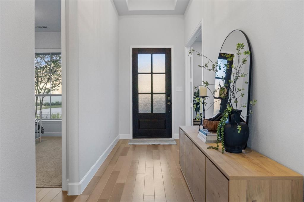 BETTER THAN NEW and move-in ready, this decked out 3,525 sq ft home is tucked inside a gated community and backs to a greenbelt with no rear neighbors, offering added privacy and a peaceful setting.Skip the wait and uncertainty of new construction, this home is already complete inside and out. The backyard is fully finished and ready for summer, featuring a lounge pool and spa with both heater and chiller, perfect for lower maintenance and costs. Speaking of low-maintenance, the turfed backyard makes for easy upkeep. Less time mowing and more time lounging in your pool with a cocktail in hand. This Perry Homes 3525 floor plan offers a well-designed layout with 4 bedrooms, 4.5 bathrooms, a dedicated study, and a media room. Each bedroom includes its own private ensuite bath, offering comfort, privacy, and flexibility for a variety of living arrangements, including extended stays, multi-generational living, or shared housing scenarios.Vaulted ceilings with large windows enhance the main living area, creating an open and inviting space that flows seamlessly into the kitchen and dining areas and floods the space with natural light. The kitchen is equipped with an oversized island, abundant cabinetry, and ample prep space, ideal for both daily use and entertaining.Upgrades throughout the home include electric blinds in the primary suite and main living area, custom built-ins in the office, a wine and beverage refrigerator, and a whole-home water filtration and softener system.Located within Midlothian ISD with convenient access to nearby schools. Community amenities include a lake and walking areas. Be settled in time to enjoy the backyard this summer!