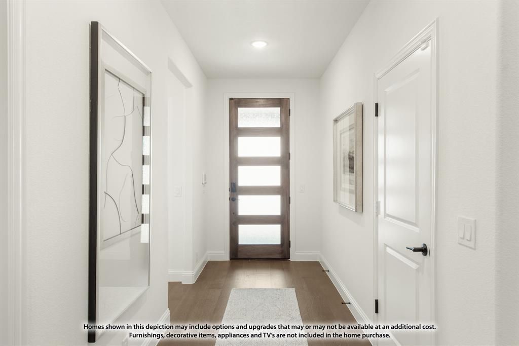 NEW! NEVER LIVED IN. Estimated Completion April 2026. The Rose from Bloomfield Homes offers a two-story layout with 4 bedrooms, 3.5 baths, and a deep 3 car garage with cedar doors, designed to balance open living and private spaces. A brick exterior is finished with a fully bricked front porch, full rain gutters, an upgraded 8 ft front door, a 6 foot wood privacy fence, and professionally installed landscaping with stone edging, creating polished curb appeal from the start. The first floor is unified by hardwood flooring that connects the foyer, study with glass French doors, and main living areas, while 5 inch baseboards add a finished touch throughout. The family room is centered around a stone fireplace extending floor to ceiling, remaining visually open to the kitchen and dining space. The kitchen is equipped with quartz countertops, built-in stainless steel appliances, an apron sink, and direct access to the covered patio, making it functional and cohesive. A dedicated media room on the first floor provides a separate, enclosed space for movie nights. The primary suite is located at the back of the home and includes an enlarged shower, separate vanities with dual sinks, comfort-height toilets, and a spacious walk-in closet. A utility room with upper cabinets adds valuable storage, while 2 inch faux blinds are installed throughout the home. Upstairs, a central game room anchors the second level alongside 3 secondary bedrooms and 2 full baths, with 2 bedrooms sharing a Hollywood-style bath for efficient use of space. Located in Meraki, a master-planned community known for open green space and planned trails, the setting complements the home’s thoughtful design and sense of connection. Visit the Bloomfield Homes model to learn more about the Rose and see how this plan comes together.
