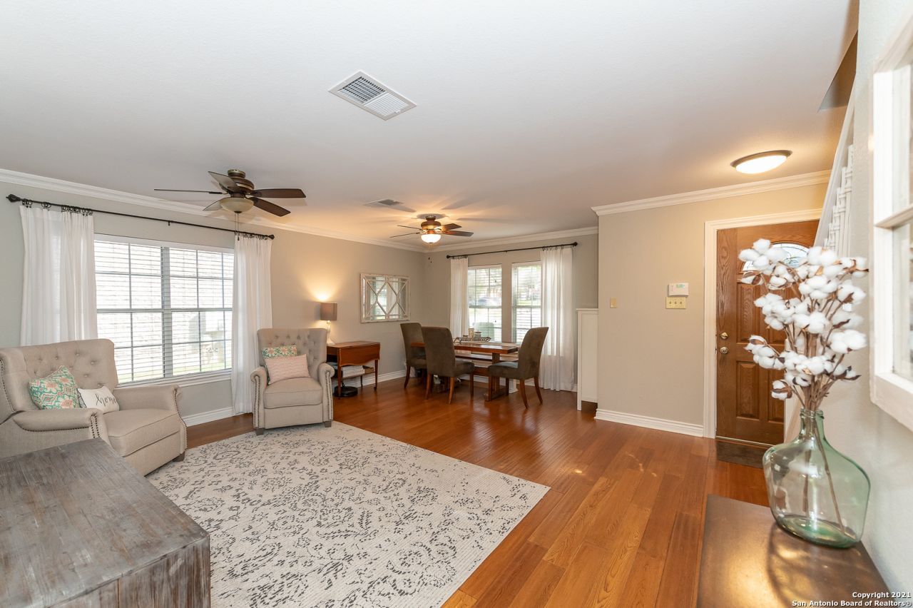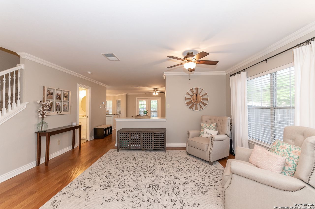 Beautiful home, nicely updated in popular Greenshire neighborhood. Lovely, large covered deck in backyard with mature trees and huge shed for storage. Open floor plan downstairs with two living/two dining, large kitchen and plenty of space in the pantry. Includes built in microwave and refrigerator. Spacious master suite offers an oversized bedroom, double vanities in bathroom, walk in shower and double master closets. Home tucked back in a quiet and inviting neighborhood. Close to Randolph, easy access to FM 78 or IH 35. Dogs allowed upon approval. No cats. Available June 19, 2026.