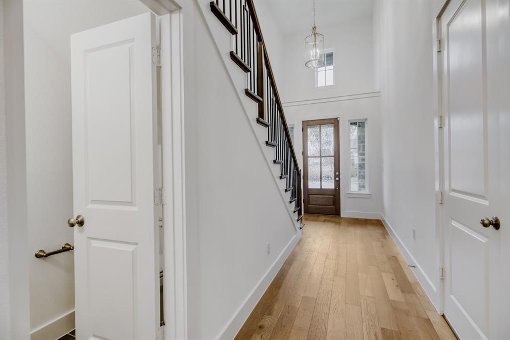 This beautiful townhome, built by renowned builder American Legend Homes, is located in the highly sought-after Castle Hills master-planned community in Lewisville, TX. Featuring 3 spacious bedrooms, two full bathrooms plus a powder bath, game room and 2-car garage, this home blends the comforts of single-family living with the low-maintenance lifestyle of a townhome. The primary bedroom offers a peaceful retreat with plenty of natural light and modern finishes. The open-concept living area is filled with natural light, thanks to floor-to-ceiling windows, customized with wood floors downstairs. The heart of the home is its state-of-the-art kitchen, perfect for cooking and entertaining. With high-end appliances, quartz countertops, custom cabinets and a functional layout, this kitchen will impress even the most discerning chefs. Enjoy movie nights and endless fun with the dedicated game room, providing the ultimate spaces for relaxation and entertainment. Whether you're hosting gatherings or enjoying quiet moments, this townhome offers the perfect blend of luxury, comfort and functionality, all within the prestigious Castle Hills Northpointe community. This home backs to a serene green open space, offering privacy and beautiful views.
