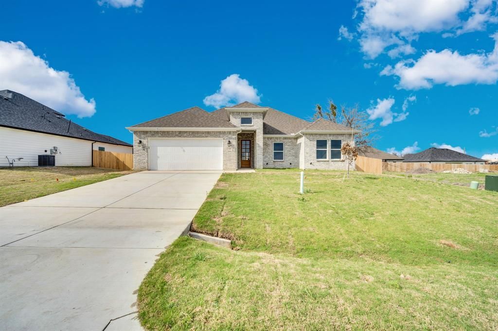 Living the dream just found a new address in the Copper Penny Estates community in Palmer, TX! This stunning 4-bedroom, 2-bath home blends modern style with everyday comfort and is designed for both entertaining and family living.The gourmet kitchen is truly the heart of the home, featuring a gas cooktop, exposed stainless steel vent hood, quartz countertops, abundant cabinetry, and a massive center island perfect for gathering. Luxury vinyl flooring flows throughout the main living areas, adding both durability and style.The open living room and breakfast area are filled with natural light and highlighted by a dramatic floor-to-ceiling tiled electric fireplace with heat blower and multi-color flame options, creating a striking architectural focal point.The private primary suite offers a tray ceiling, ceiling fan, and a spa-like en-suite bath complete with dual quartz vanities, soaking tub, separate shower, and a custom walk-in closet. A split-bedroom layout provides added privacy for the primary suite.Step outside to a large fenced backyard with a covered patio—ideal for relaxing evenings or weekend entertaining. Additional features include a spacious utility room with cabinets, utility sink, and drip area for added convenience.Located in the charming Copper Penny Estates community in Palmer, TX. For more information about the neighborhood, visit www.copperpennyestatespalmer.com.