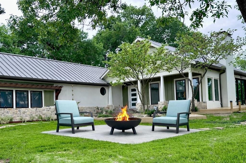 Meticulously redesigned, this modern architectural residence offers a rare blend of refined design, functionality, and privacy in Wylie, Texas, just minutes from Lake Ray Hubbard. From the moment you enter, the home establishes a distinct presence. A handcrafted oak wrapped beam, custom floating entry cabinet, and curated architectural accents create a warm yet elevated introduction. The open concept great room is anchored by a concrete inspired wood burning fireplace, while expansive windows frame the natural surroundings and draw in consistent natural light. The kitchen has been thoughtfully designed for both daily living and entertaining. A 14 foot quartz island with waterfall edge serves as the focal point, complemented by European style cabinetry, marble accents, and GE Café appliances with brushed copper hardware, including an induction cooktop and double convection ovens. Subtle ceiling inlay work and ambient lighting further enhance the space. The layout is both functional and flexible, offering a private guest suite with ensuite bath, two additional bedrooms with distinct character, and a well appointed hall bath. The laundry room continues the design narrative with custom storage, a butcher block folding station, and elevated finishes. The primary suite is positioned to capture the setting, with walls of glass overlooking a creekside backdrop. A linear fireplace adds warmth, while the ensuite bath features dual rain shower heads, double vanities, and a custom walk in closet, creating a true retreat. 8 foot sliding glass door provides seamless indoor outdoor flow, opening to a private setting designed for both relaxation and entertaining. The property is located approximately 3 miles from a public boat ramp for Lake Ray Hubbard, offering convenient access to the water while maintaining privacy.A thoughtful residence for those who value design, efficiency, and a more intentional way of living.
