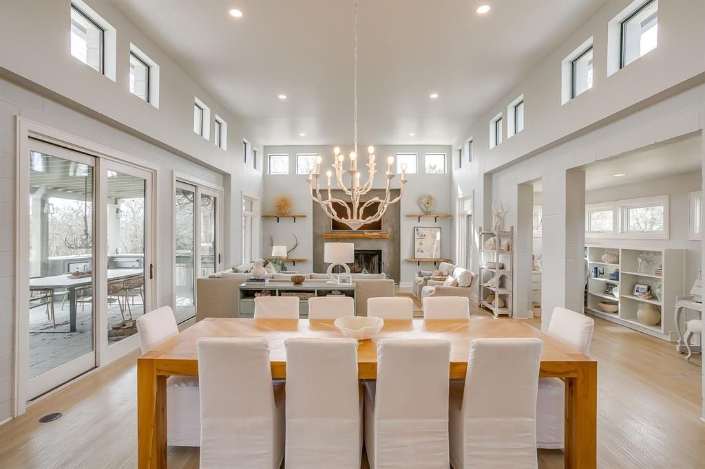 Surrounded by upscale properties & hidden behind 3 drive gates in the heart of Aledo, this AG exempt 8.8 acre ranchette offers one of Aledo’s most architecturally inspiring homes + barn in a magazine worthy setting. The drive curves around a modern barn to reveal the main home (3429 sqft) + detached structure (994 sqft) constructed with metal, cinderblocks and siding. Concrete planters, yucca, agave, a tall bald cypress...all create a Tx hill country vibe. Behind the glass front door lies a sensory integration of natural light, unique architectural lines & beautiful design selections. The home was last renovated in 2021. The spacious back porch & outdoor kitchen overlook a kidney-shaped pool evoking mid-century nostalgia (added in 2013). In 2021 an addition to the home enlarged the kitchen, added a large additional laundry & pantry space + enhanced the primary suite. The expanded kitchen’s attention to detail and tasteful beauty are unparalleled: thick marble, butcher block, waterfall island with European panel detail, dramatic black 6 burner gas range with gold detailing, metal inset cabinet doors, aged hewn wood, soapstone, acrylic, glazed artisan tiles...countless phenomenal touches. The beautiful owner’s suite with backyard views with a spa-like bathroom & large walk in closet has access to laundry. The family room with plaster surround fireplace & hewn wood mantle has a tall, spacious ceiling (the room has over 35+ panes of glass), multiple sliding doors to the porch + a music or office space tucked on the side. From lighting and wallpapers to hardware and paint…the blend of colors and materials is pure delight. The detached structure offers a recreation room, upstairs guest suite, smaller garage bay for a shop or ATV. The barn doors open to a large stall (could be divided into multiple stalls), wash bay, insulated tack & feed rooms, automatic water, with heat… Round pin with seating & lights. Property offers multiple pastures and extensive pipe fencing!!!