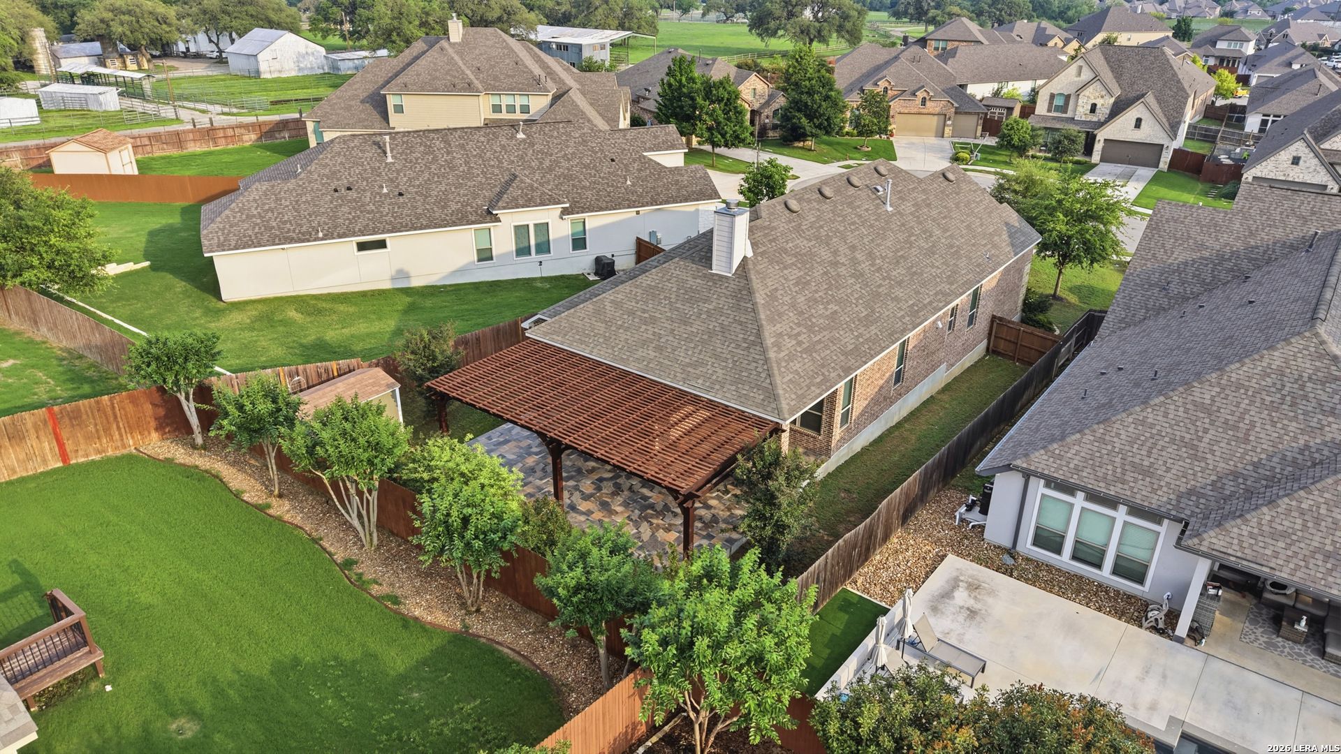 Located on a quiet cul-de-sac within the gated South Fork section of Johnson Ranch, this impeccably maintained one-story Highland Homes residence offers 4 bedrooms, 2.5 baths, and refined Hill Country living with quality craftsmanship throughout. The open-concept layout is filled with abundant natural light, soaring ceilings, and solid flooring throughout with no carpet. A chefs kitchen anchors the home with an oversized granite island, 42" cabinetry, designer tile backsplash, gas cooking, and built-in stainless steel appliances, all flowing seamlessly into the spacious living area highlighted by a floor-to-ceiling stone fireplace. The private primary suite features a spa-inspired bath with dual vanities, a soaking tub, and separate walk-in shower. Outdoors, the oversized covered patio creates the perfect setting for relaxing or entertaining. Residents enjoy access to Johnson Ranch amenities including a resort-style pool, basketball court, playground, and scenic community spaces.