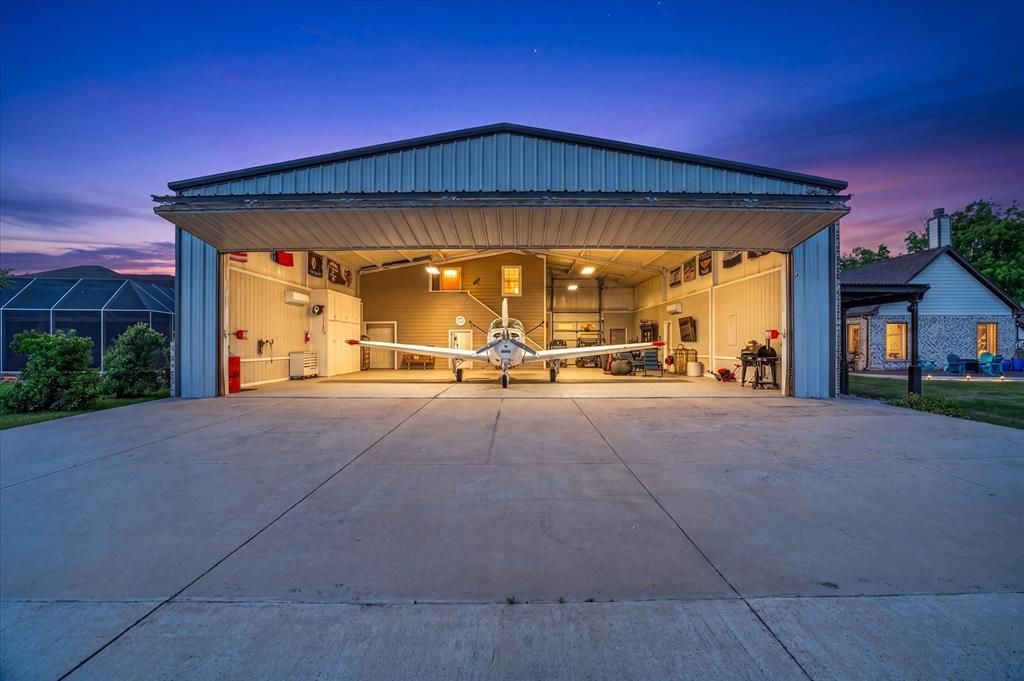 This exceptional custom home is located behind the gates of Pecan, in The Landings Airpark, FAA Identifier 66TE, with a direct concrete taxiway, RNAV approach, pilot controlled lighting, & VASI. The 50 x 60 hangar spans 3,000 square feet, is fully heated & cooled with hard cell foam insulation, textured epoxy flooring, MacroAir fan, color changing backlighting, sink, storage room, & hidden storage for a clean space. The workshop includes a full bath, 220V commercial plug, 110 amp service, air compressor with three hookups, built in dust collection, speakers, & storage. The SHWAISS bifold door opens 42 feet wide with 10'10 ft clearance. (Replacement cost for a similar hangar is estimated around 300K). Above the workshop, separated by a sound insulated wall, is a fully finished 463 square foot apartment with a king size bedroom, full bath, living area, & kitchen. This is a true apartment, not guest quarters, with full separation from the main home, ideal for multi-generational living. The main residence offers 3,711 sq ft with an open layout & elevated finishes including hardwood flooring, granite surfaces, upgraded lighting, & custom details. The home features 3 bedrooms, 2 full baths, & one half bath, with each guest bedroom offering its own vanity & sink. A 294 square foot bonus room with a walk in closet & sink can serve as a 4th bedroom, office, or media space. The primary suite connects through the oversized closet directly to the utility room. Additional highlights include a two year old roof, tankless water heater, foam insulation, new dishwasher, French drains, generator hookup in the three car garage, stamped concrete, covered walkways to the hangar, & landscaping. The layout keeps the hangar & home connected so your aircraft, RV, boat, & equipment are part of your daily routine. More than a hangar, more than a home, it’s the lifestyle you deserve! Full list of features, property videos, & 3D tour available soon. Visit ppoaweb.com to explore the community.