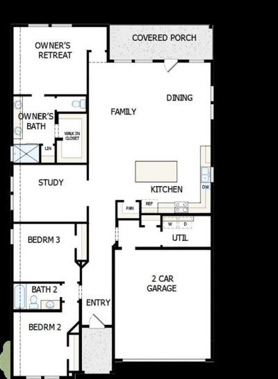 Experience modern elegance and everyday comfort in The Raven, a beautifully designed one-story, three-bedroom, two-bath David Weekley home located in the scenic Creekshaw community of Royse City. Offering just over 2,100 square feet, this thoughtfully crafted floor plan includes an enclosed study, perfect for a home office or reading nook, and an extended covered porch ideal for outdoor entertaining. Step inside to discover a stunning interior featuring sleek black cabinetry, warm brass fixtures, and light quartz countertops that create a sophisticated contrast throughout the home. The chef-inspired kitchen boasts a matte black sink, elegant vertical tile backsplash, and statement pendant lighting, all seamlessly connected to an open family and dining area. The owner’s retreat offers a serene escape with a spa-like bath showcasing marble-look tile, matte black fixtures, and modern lighting. Secondary baths continue the elevated design with coordinating finishes and stylish black cabinets. Across the home, luxury light wood-look flooring, soft neutral carpet, and Alabaster walls provide a warm and inviting ambiance. Additional highlights include contemporary lighting, black hardware accents, and an optional fireplace for cozy nights in. This stunning home combines David Weekley’s signature craftsmanship with on-trend design and energy efficiency is the perfect blend of luxury and livability.