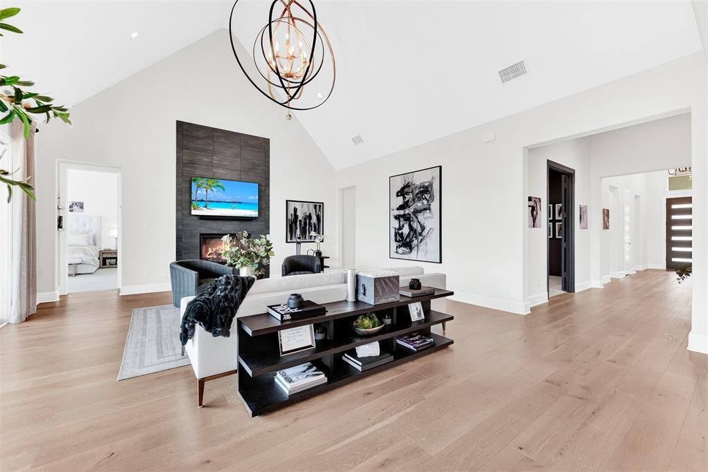 Stunning single story dream home on a corner lot in sought-after Windsong Ranch! Immaculate inside and out with custom upgrades and special features in every room. You'll never run out of space with a light-filled open floorplan that boasts five bedrooms, each with a walk-in closet! Wide plank wood flooring ushers you past the media room and office with custom accent wall to a truly breathtaking living room: 12ft gas fireplace, 22ft vaulted ceiling, upgraded lighting, custom paint and large sliding door to the covered patio. It flows seamlessly to the gourmet kitchen with quartzite counters and backsplash, KitchenAid 6 burner gas cooktop, double ovens, walk-in pantry and extended island. A sunny breakfast nook is the perfect way to start your day! Off the living room is the primary bedroom, your personal retreat. Relax in comfort with 13ft ceiling, silhouette-style window coverings framing a wall of windows overlooking the backyard and a spa-inspired bath with soaking tub, walk-in shower, two walk-in closets and custom tiled walls. Other custom features include Sonos surround sound speakers in great room, custom paint, custom lighting, alarm system with cameras and more. Exquisite attention to detail everywhere you look, including the yard with extensive landscaping, low voltage lighting, speakers on back patio with wood-like tile floor. Even the 2 car garage features custom wall-to-wall cabinets, epoxy floor and custom paint. A single car garage is separate, perfect for storage! Windsong Ranch features premier amenities such as a 5-acre lagoon pool with 3 beaches and paddleboards, three amenity centers with tennis, pickleball & basketball courts, 2 pools plus splash park and so much more, plus 600 acres of open space, 30+ miles of trails, and a mountain bike course!