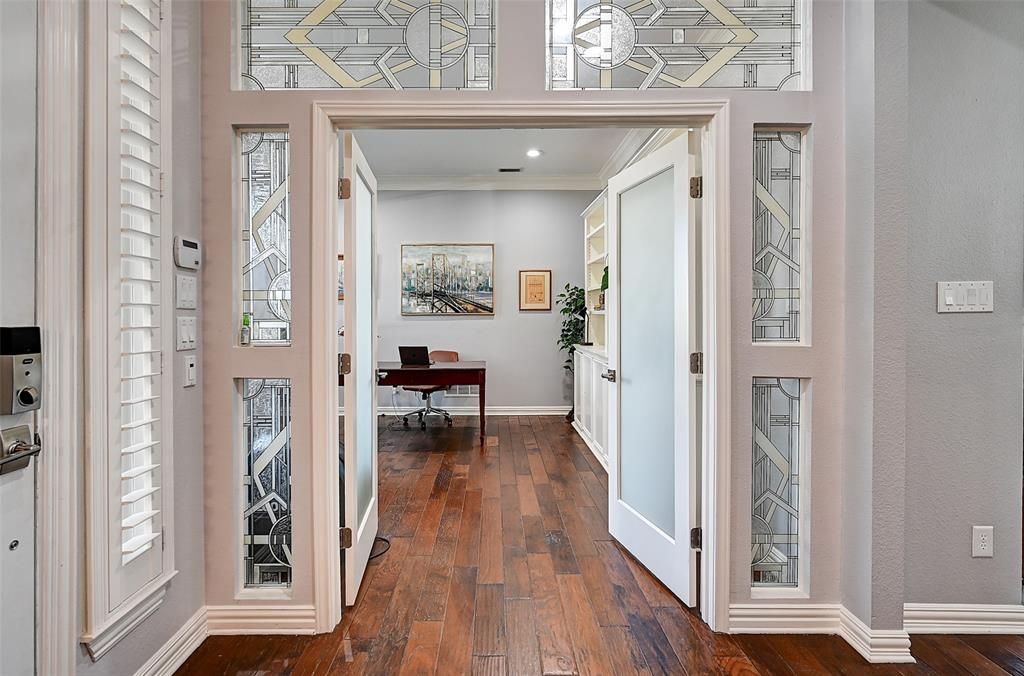 In the heart of Highlands of Preston, this beautifully updated Sanders Custom home offers a perfect blend of elegance, comfort, and thoughtful upgrades. Rich wood flooring flows through the formals, family room, downstairs primary suite, game room, and all four upstairs bedrooms, while a striking staircase with wrought-iron balusters and full wooden steps creates a dramatic architectural focal point. The remodeled kitchen features stunning quartzite waterfall countertops, Bosch stainless convection oven, 36 inch pop-up down draft exhaust powered by a 1500 CFM external blower, and built in microwave and opens seamlessly to the inviting family room with a brick fireplace, ideal for everyday living and entertaining. The updated primary bath has a Dado quartz bathtub and provides a relaxing retreat, and two Jack-and-Jill baths upstairs offer convenient ensuite-style access within the bedrooms. Additional improvements include updated LED lighting, upgraded HVAC systems, high-impact roof installed in 2016, all windows replaced in 2025 with Low-E and transferable warranty. The home also features a large grassy backyard with a private patio and a 3-car rear-entry garage. Located in highly sought-after West Plano schools, this exceptional home offers timeless style, modern updates, and a prime location in one of Plano’s most desirable neighborhoods.