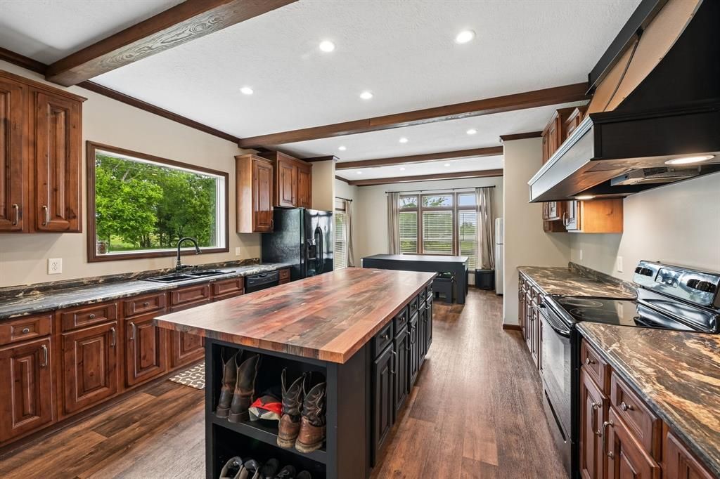 DREAMING for a home out in the country? This beautiful home was the manufacture's model with tons of upgrades and is sure to catch your eye & your heart. It's nestled on 2.23 acres of open land & has a HUGE shop. The home was built in 2019 on a permanent foundation. This home is complete with a beautiful living space & open concept with a cozy fireplace for those cold winter nights. Living space is open to the kitchen with oversized island perfect for additional seating, amazing wood beams on ceiling and tons of counter and cabinet space! Two bedrooms and guest bath located on the right side of the home while the master is located on the opposite side.