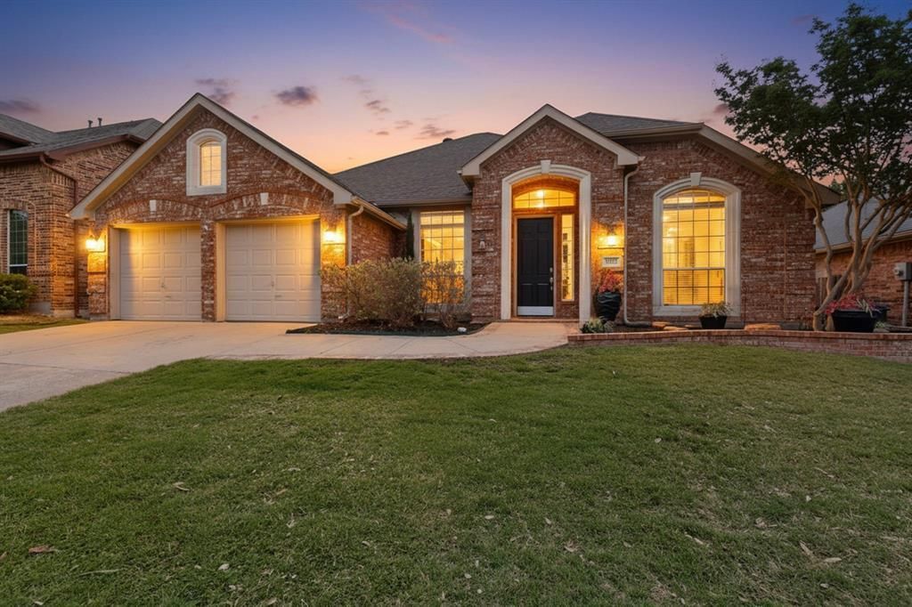 Stunning single-story home located in a sought-after golf course community, featuring a resort-style backyard oasis with sparkling pool, spa, covered patio, and exceptional entertaining space. Beautifully updated interior offers open-concept living with wide plank flooring, designer lighting, modern finishes, spacious family room with fireplace, and an impressive kitchen with oversized island, quartz countertops, abundant cabinetry, and generous prep space.Private primary suite includes a spa-inspired bath with dual vanities, separate shower, relaxing jacuzzi tub, and large walk-in closet. Flexible floorplan offers secondary bedrooms plus dedicated office, media, or bonus room options.Located in an established golf course community with neighborhood amenities including pool, parks, trails, scenic green space, and convenient access to George Bush, Firewheel, shopping, dining, and major commuting routes.Rare combination of single-story layout, designer updates, quartz kitchen, golf course community living, and backyard lifestyle.