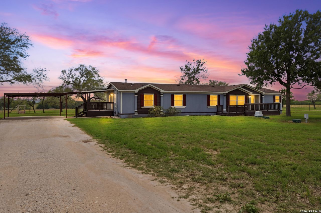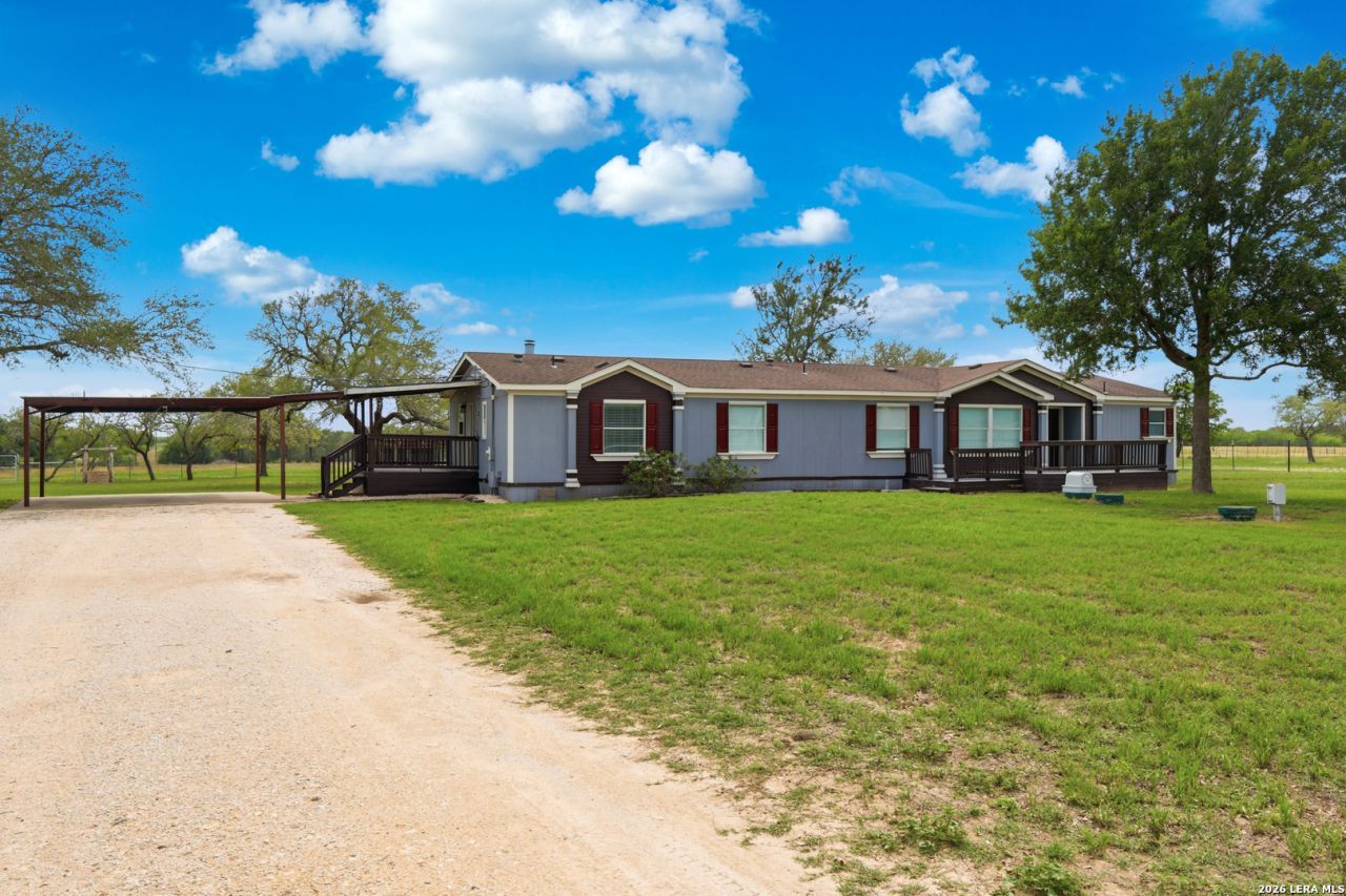 Spanning just under 46 acres in Gillette, TX, this ag-exempt and unrestricted ranch blends functionality with country living. The property features a beautifully updated double-wide home, a 30x40 shop equipped with electricity, sink, and water heater, plus a 20x50 camper building with an attached lean-to for additional covered storage. Additional improvements include sheds, cattle pens, a chicken coop, and quality perimeter fencing, making it well-suited for livestock, recreation, or a variety of uses. The land offers open grazing pastures, a water well, and multiple ponds, including a large pond with a covered dock that is currently holding water at a reduced level. With normal rainfall, the ponds have strong potential to fully enhance the propertys appeal. Enjoy peaceful rural living with the convenience of being just 55 miles from downtown San Antonio
