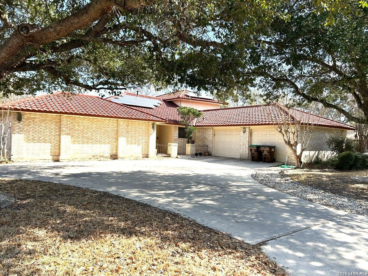 Spanish Style Villa, oversized corner lot, Nestled in the Woodlake Estates! $15,000 towards Closing cost fees!! Metal Tile Roof, with a lifetime warranty -Bosch Appliances (all appliances convey), home features over 3,000 sq ft, 4 bedrooms and 3 full baths (Including the primary and secondary bedrooms and 2 full baths on the main level), Upstairs, two addition bedrooms provide plenty of space for family and visitors. island bar overlooking living room with a ceiling to floor brick and mantal fireplace home also has walls of sunlight! this home has beautiful mature trees, walk out the French wood doors to a back yard with a covered titled patio ready for you to host your next celebration! primary bedroom features a private wraparound patio that leads to outside courtyard. This home offers one of the largest lots in the subdivision at nearly 1/3 acre. a spacious two-car garage, offering convenience this home provides easy access to Randolph AB, schools, shopping, dining, and major highways- This home is a must see, schedule your appointment today!