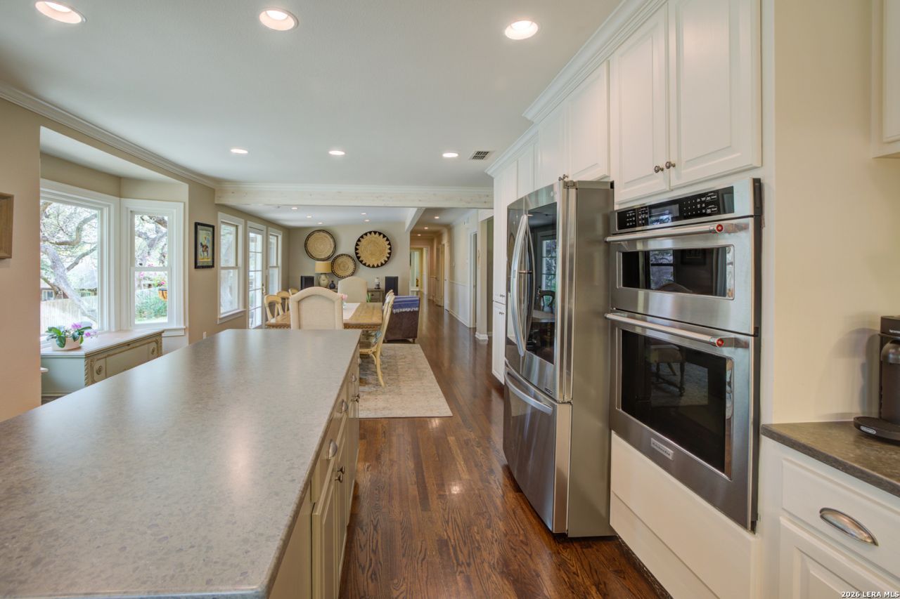 The one youve been waiting for! This beautiful midcentury home on the hill in New Braunfels is set back on a tree filled lot just shy of an acre. All 4 bedrooms have their own en-suite full bathrooms, plus a hall powder bath. A dreamy enclosed sunroom, heated pool, separate stand alone office, basketball pad or extra outdoor entertaining space, and hill country style outdoor shower. Charming details like antique glass doorknobs, original tile in several bathrooms, wood floors, stone fireplace, and a laundry chute. Paired with modern updates throughout including windows, a primary suite addition, and more! This is a classic New Braunfels home on the hill. A short golf cart ride to Landa Park and Wurstfest and minutes from Gruene. This property is perfectly situated in a coveted neighborhood close to entertainment and all of the conveniences for daily life including commuting to San Antonio or Austin if needed. This is a rare opportunity to own a piece of Texas straight out of a storybook.