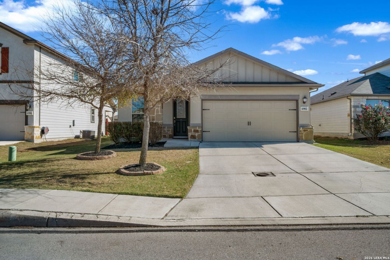 Welcome home to this wonderful single-story home with a functional and open floor plan. This residence offers three bedrooms and two full bathrooms, including a private primary en-suite bedroom. The kitchen provides gas cooking, great use of cabinet and counter-top space, walk in pantry and an island that is perfect for eat-in breakfasts, and flows into the main living area. Because it is a single story home it is wonderful for everyday living and entertaining. Additional features include an attached two-car garage with water softner, garage door opener and a fenced backyard and a great sized covered patio with 2 ceiling fans and even has a gas stub out for an outdoor grill use. Conveniently located with access to major roadways, retail centers, dining, and everyday services, come see this home in person! Also this home has foam insulation to the attic space and is approx 10 miles to JBSAFtSamHouston and approx 8 miles to JBSARandolph!