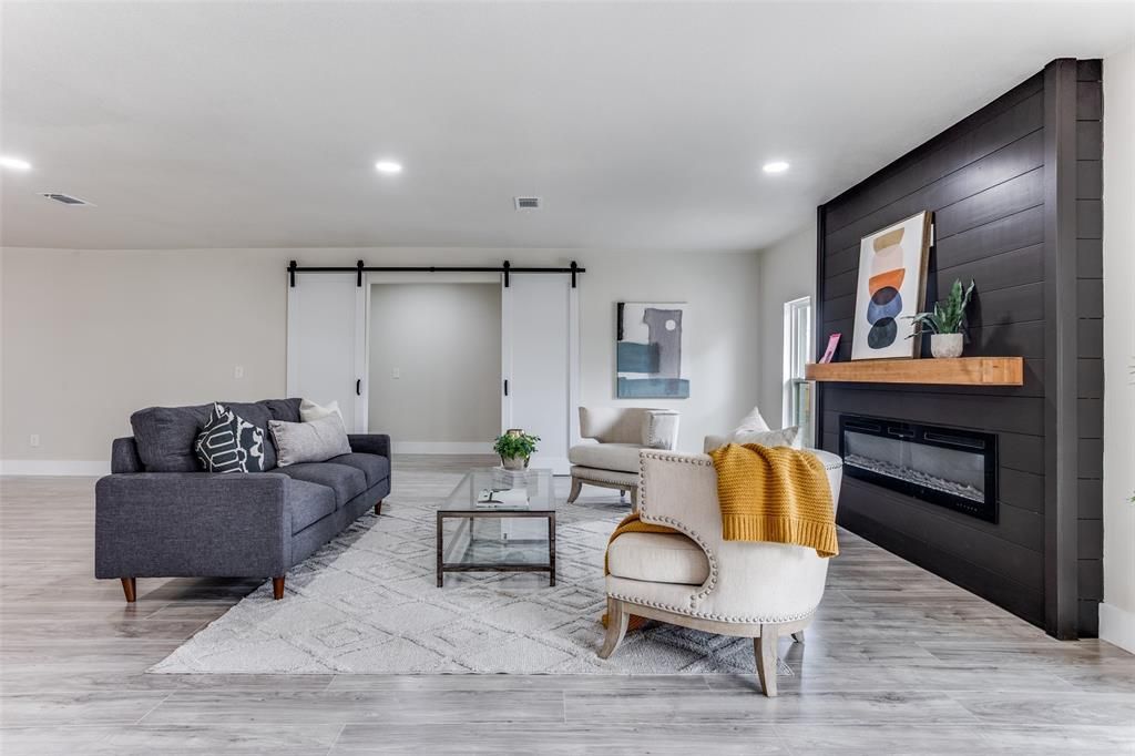 Stunning fully renovated ranch-style home set on almost an acre, surrounded by mature trees and offering both privacy and modern elegance. The open-concept living space is filled with natural light and anchored by a striking contemporary fireplace, creating a warm and inviting atmosphere. The designer kitchen features quartz countertops, white shaker cabinetry, stainless steel appliances, a bold navy island, and a sleek tile backsplash that adds a sophisticated touch. The oversized primary suite offers a peaceful retreat with patio access and a spa-inspired bathroom complete with a spacious walk-in shower and modern finishes. Step outside to enjoy the covered patio and expansive backyard, perfect for entertaining or relaxing. The property also features a detached garage and additional covered structure, providing plenty of space for parking, storage, a workshop, or hobbies. Offering modern upgrades, generous outdoor space, and the feel of country living with city convenience, this home is a rare find. Buyer incentive available. Buyers who choose the seller’s preferred lender may receive a lender credit toward closing costs. Contact listing agent for details.