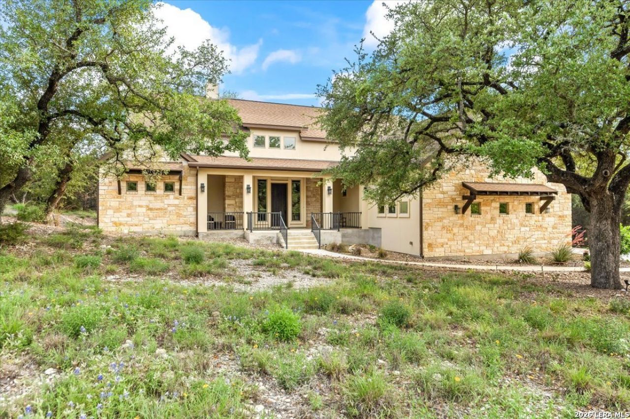 Set within a gated Hill Country community in Fischer, this beautifully designed 3-bedroom, 2.5-bath home offers privacy, thoughtful upgrades, and functional luxury. The property is fenced with gated access and surrounded by beautiful oak trees and abundant wildlife, creating a peaceful setting while still being conveniently located near everyday essentials. The Inside, the home features a chefs kitchen with a striking leathered granite island, reverse osmosis system, mud room, and a hidden safe room/study. The 10-foot garage clearance is ideal for larger vehicles, and the garage also includes 220 power. Additional upgrades include a tankless water heater, hardwired cameras, fiber optic high-speed internet, and a 250-gallon propane tank. Outdoor living is built for entertaining with a fully equipped kitchen featuring a Coyote grill and stainless flat top, an outdoor shower, plus electrical and gas already installed for a future pool. Enjoy the best of Hill Country living just 10 minutes from Canyon Lake and a grocery store. The Guadalupe River is just 15 min away. Approximately 25 minutes to San Marcos, 35 minutes to New Braunfels, and about 45 minutes from both Austin and San Antonio.