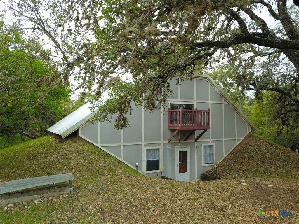 Appraisal came in at $335,000. You will have a $38,000 equity when you buy! The home is larger than what the appraisal district shows! Step into a storybook setting with this rare 2-bedroom, 1.5-bath hillside Hobbit-style retreat, tucked into over an acre of unrestricted land with serene creek frontage. Designed into the natural landscape, the home benefits from passive thermal efficiency-cool in the summer, warm in the winter. With a private water well, septic system, and ideal solar potential, this property offers the opportunity for true off-grid living. Towering oak trees frame the grounds, with ample space for gardens or outdoor living. The upstairs deck delivers breathtaking views overlooking the Medina River and surrounding Hill Country-just 20 minutes from San Antonio or Boerne. The Rain will put water in the creek and the river! This property is WATER FRONT! Won't last long. Super energy efficient, a Perfect secluded home in the country. Go off Grid! Cannot get any better than this. On a Dead-end street but 20 minutes from San Antonio!