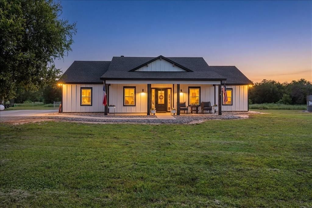 Tucked away on 12 beautiful acres in Palo Pinto, Texas, this 2023-built modern farmhouse offers the perfect blend of privacy, charm, and peaceful country living. Surrounded by mature trees and fully fenced. The home features an open concept layout with a spacious farmhouse style kitchen that flows seamlessly into the living area perfect for entertaining or everyday living. Natural light pours in, highlighting the clean lines and modern finishes while maintaining that warm, inviting farmhouse feel. The home also features 3 bedrooms and a study. The primary bedroom features a large bathroom with a soaking tub and walk in shower. Step outside and take in the true beauty of the land. A serene pond adds to the tranquil setting. The acreage provides plenty of room for animals, gardening, or simply enjoying the outdoors. This property is already set up for a small homestead lifestyle, complete with stables for goats, chickens or livestock. There is also dedicated RV parking already in place, making it easy to host guests or accommodate multi generational living while still maintaining privacy. Whether you’re dreaming of a quieter lifestyle, a weekend retreat, or a place to spread out and create your own slice of Texas heaven, this property delivers. Modern comfort meets country charm, all just a short drive from city conveniences. Don’t miss your opportunity to own a one of a kind Texas retreat where life truly slows down.