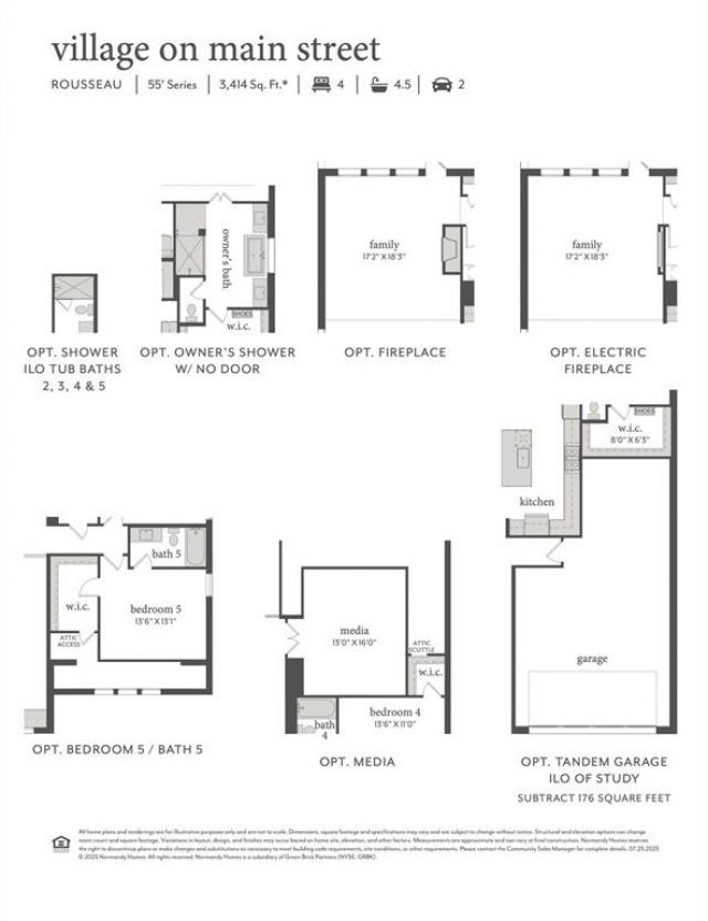 NORMANDY HOMES ROUSSEAU floor plan. Our renowned model home plan on a North facing lot in Frisco spans 3,945 square feet and offers luxurious living. Inside, discover an elegant design, an open living area, and a chef’s kitchen with top-notch appliances. Enjoy a spacious study, and a lavish owner’s suite on the main floor. With a secondary bedroom and full bathroom downstairs, plus three more bedrooms and baths upstairs, ample space for your family and guests. Enjoy a media and game room, perfect for entertainment. This coveted plan is almost sold out!