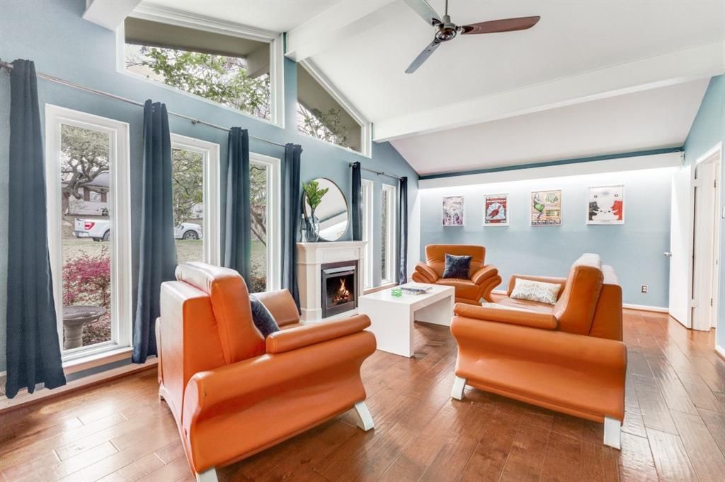 Discover this beautifully updated mid-century gem in the sought-after Lakeland Highlands neighborhood, Lake Highlands schools, and just minutes from downtown and within walking distance from White Rock Lake & Park, for effortless access to parks, dining, and retail. Nestled on a serene, tree-shaded lot, this 3-bedroom, 3 living areas which includes a gameroom which could be used as a studio or extra bedroom, 3 full bath home boasts 2,755 sq ft of open-concept living with gleaming wood floors and all sliding doors, front door and windows throughout. The inviting layout flows seamlessly from the entryway into the formal living, kitchen and dining areas, anchored by a central fireplace and a modern chandelier that adds warm ambiance. The spacious kitchen features a Viking 5 burner Viking range, crisp white cabinetry, dramatic white countertops, a breakfast bar, and even room for a computer station. Step through the sliding doorway for an extended living and dining experience onto a large covered balcony with a view of the downstairs open patio enclosed in a privacy fenced backyard. So perfect for everyday living or entertaining. Bathrooms have been tastefully updated with granite countertops, tiled floors, and tub and shower enclosures, while the primary suite offers a tub plus a walkin shower and a heated towel rack. A few of the recent upgrades that elevate this contemporary envisioned home: 6 year old composition roof, wood flooring and beautiful double pane gas infused high-quality vinyl type windows thru out home, contemporary style front door, reconfigured and renovated primary bathroom, adding jetted extra deep Kohler tub and WI shower. Extra WI storage space extends from the 2 car garage to beneath the house that could even be utilized as a storm cellar. Priced to impress in a vibrant market where similar updated homes have sold quickly Do not miss your chance to own this stylish retreat blending classic charm with modern comforts!